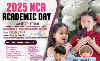 Save the Date: When: August 7th – 8th, 2025 Where: NCA Campus Contact: 02-969-1954 Website: www.nca.ac.th
